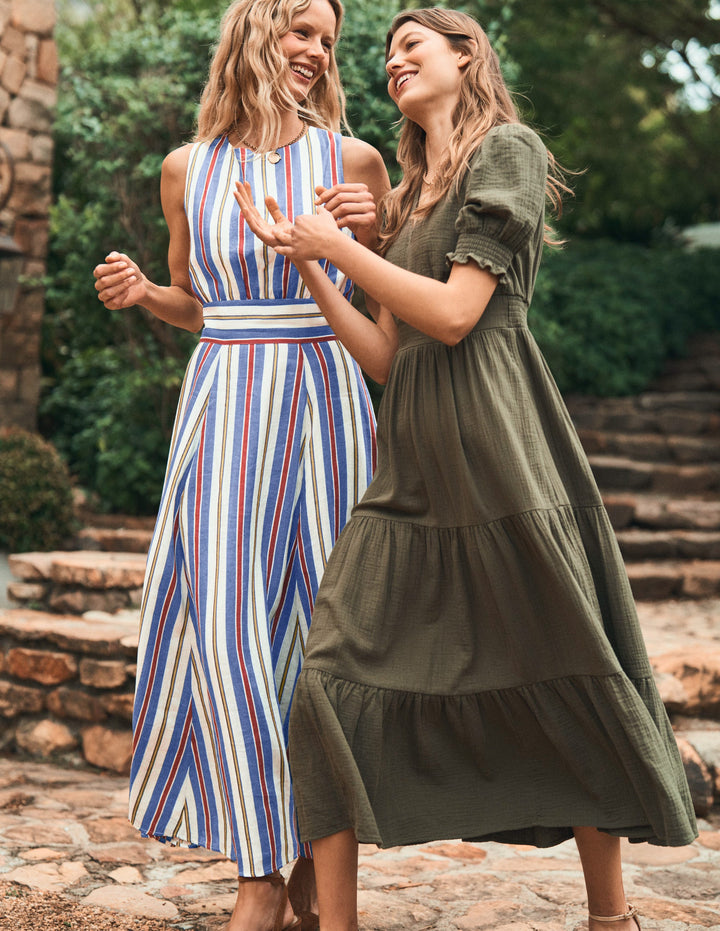 If you're going away Double Cloth definitely deserves a place in your suitcase. This double layer of lightweight cotton doesn't need to be ironed and it's perfect for warm weather. These breezy skirts and dresses are ideal for morning, noon and night.