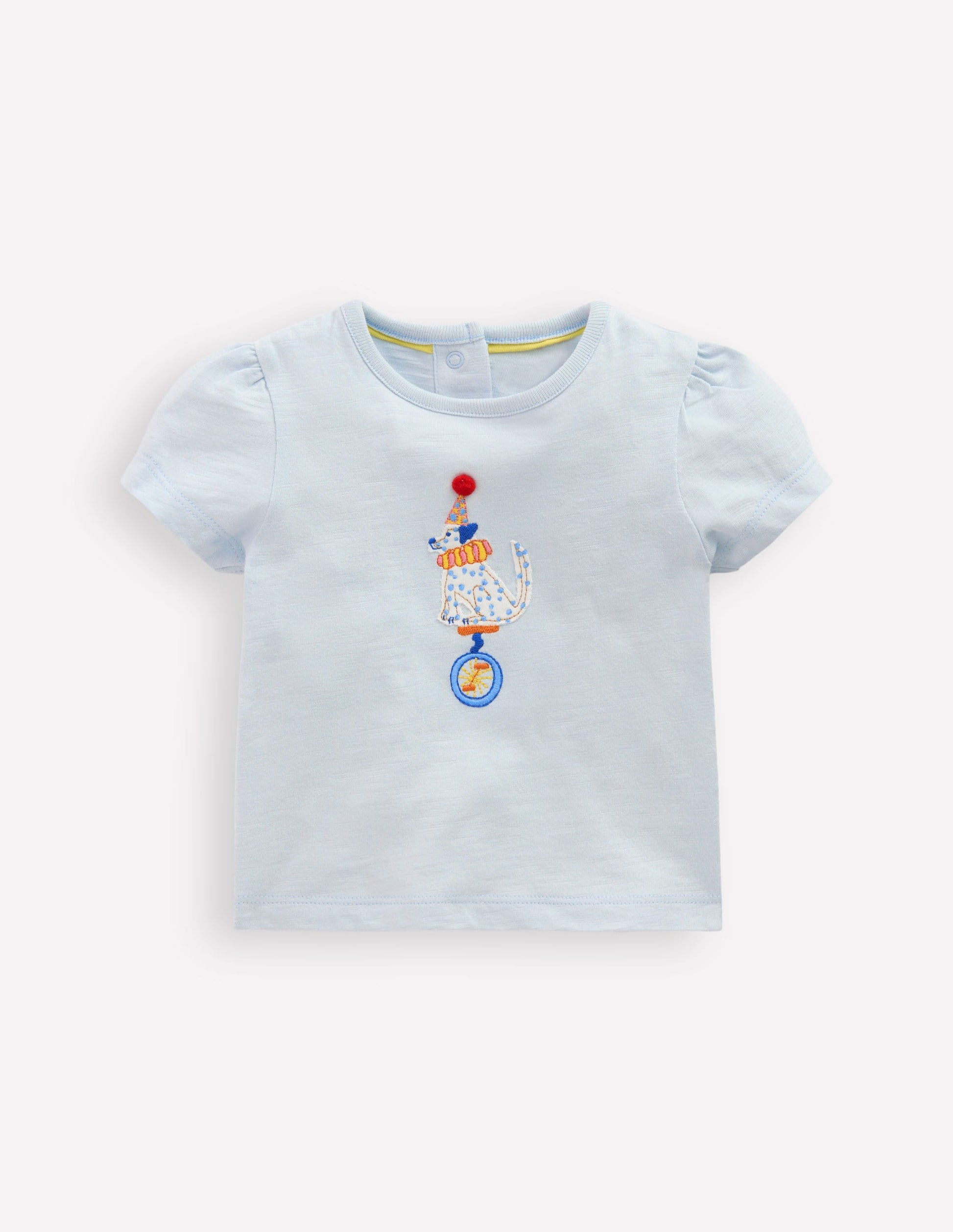 Girls Puff Sleeve Logo T-Shirt Cloud Blue Dalmation Unicycle