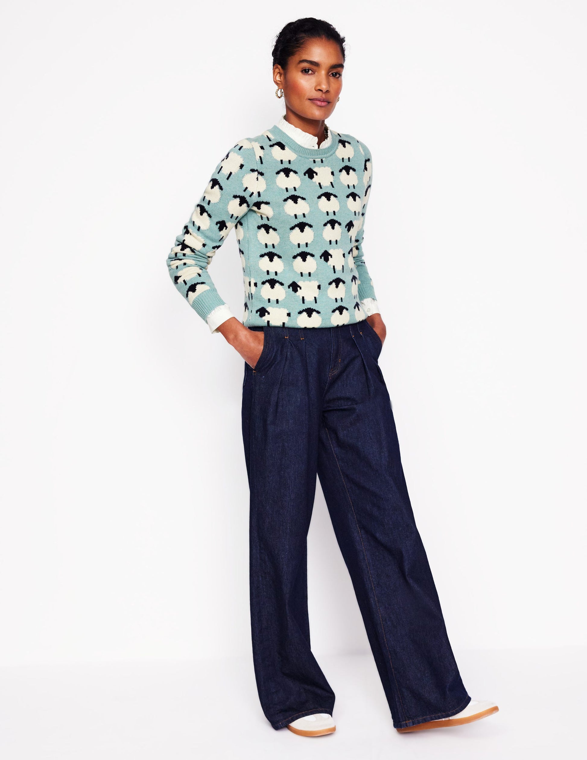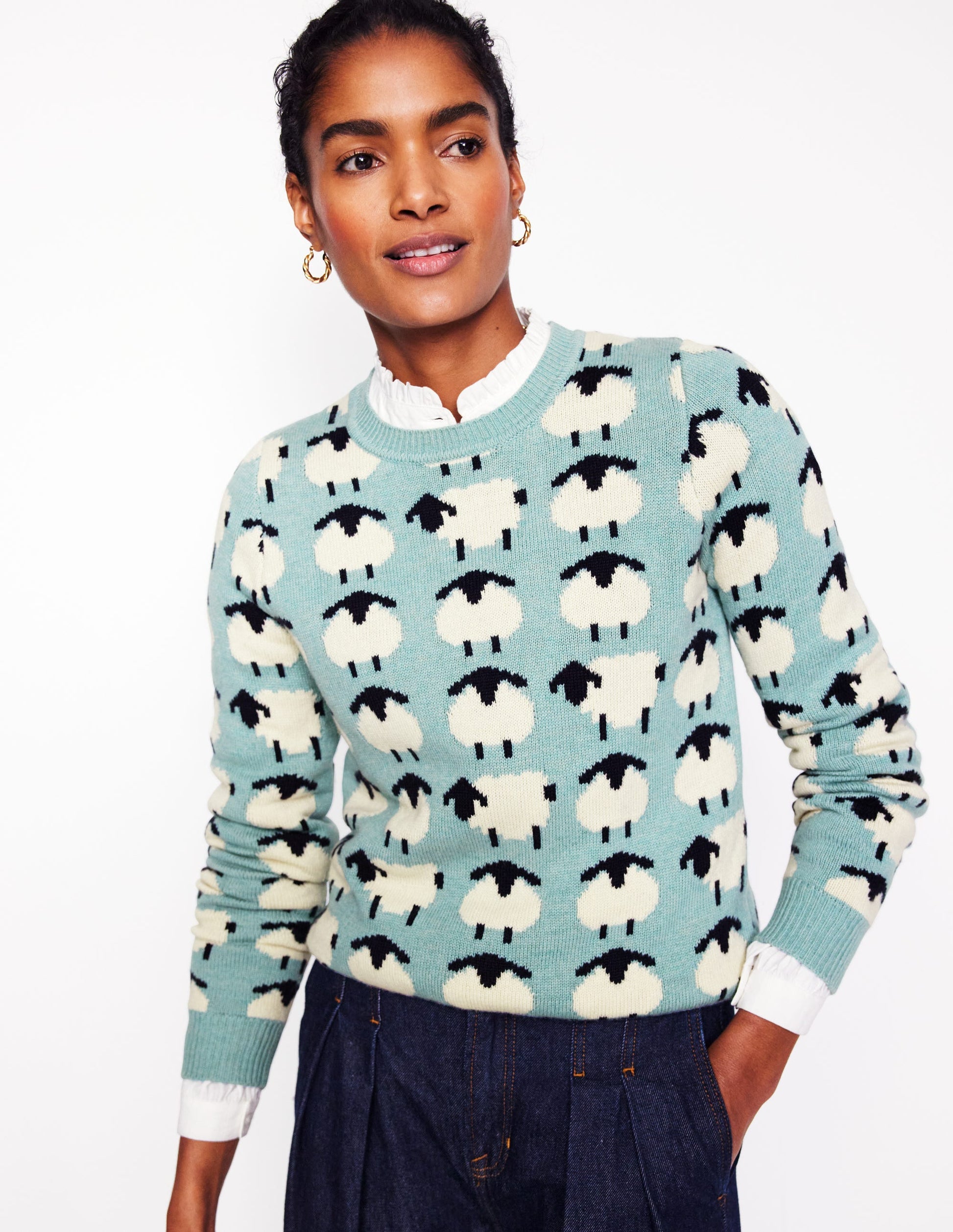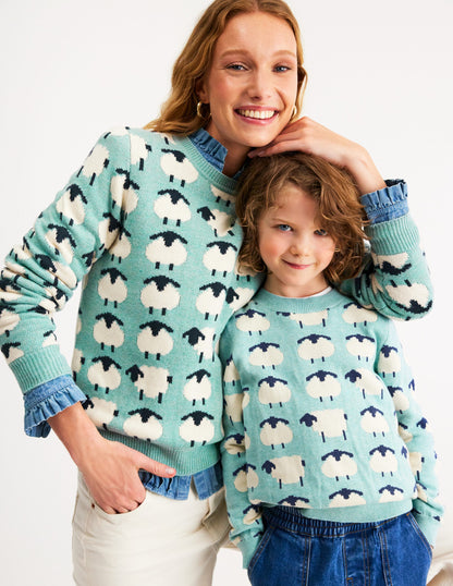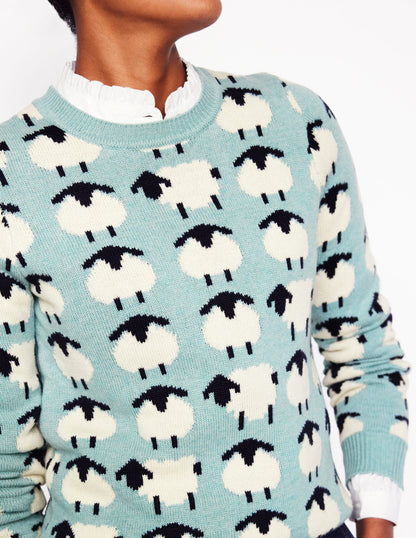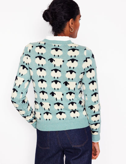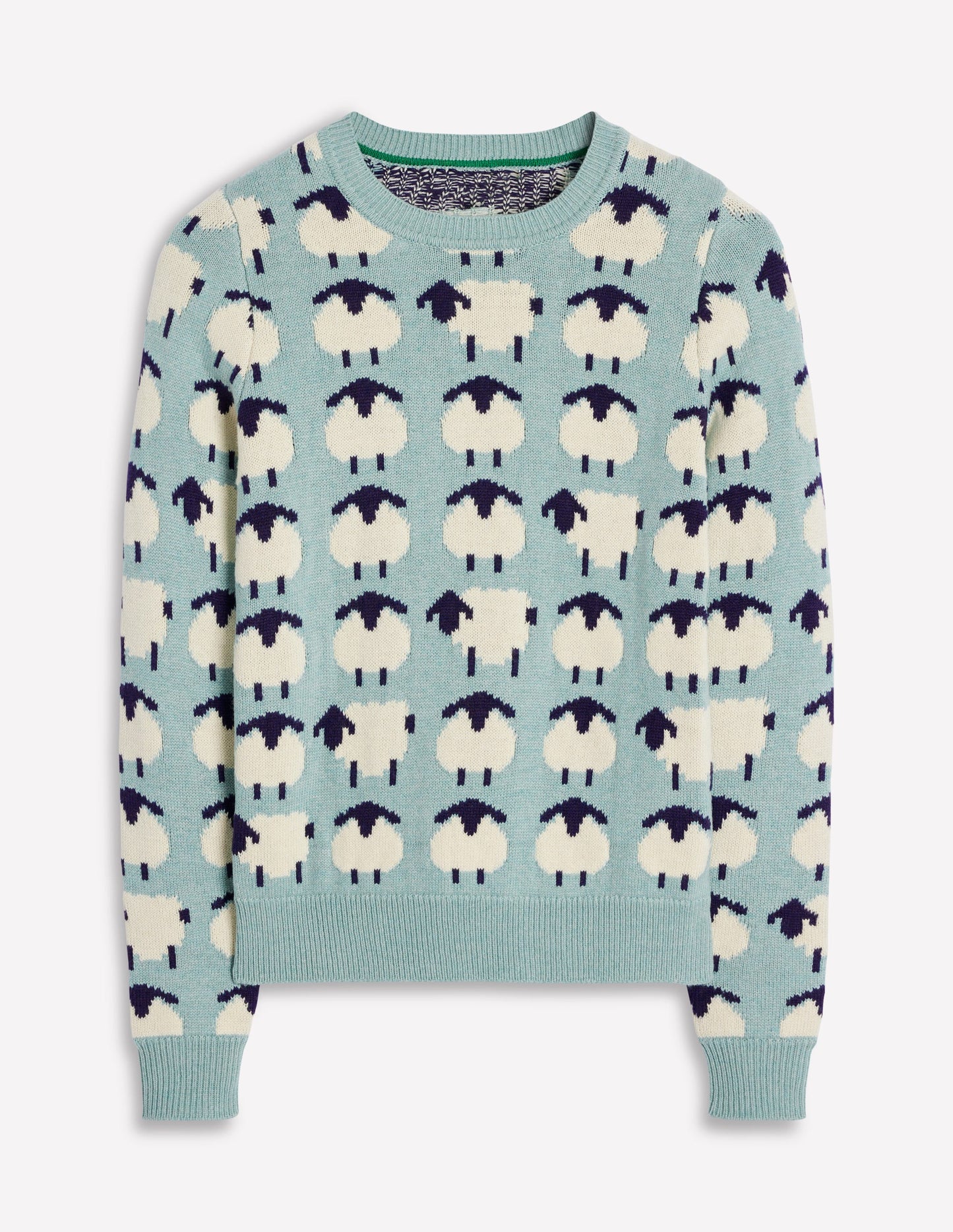 Heather Jacquard Jumper-Seamist Blue, Sheep