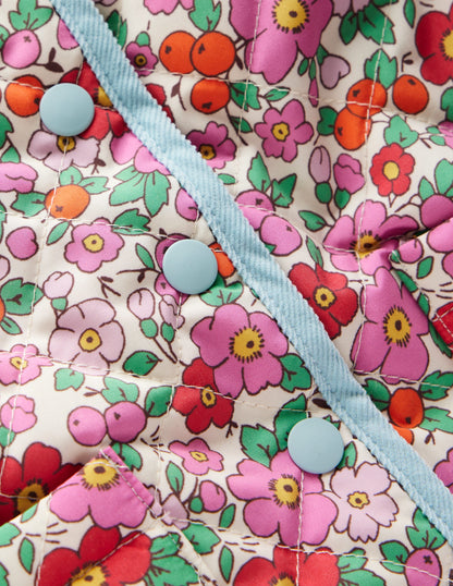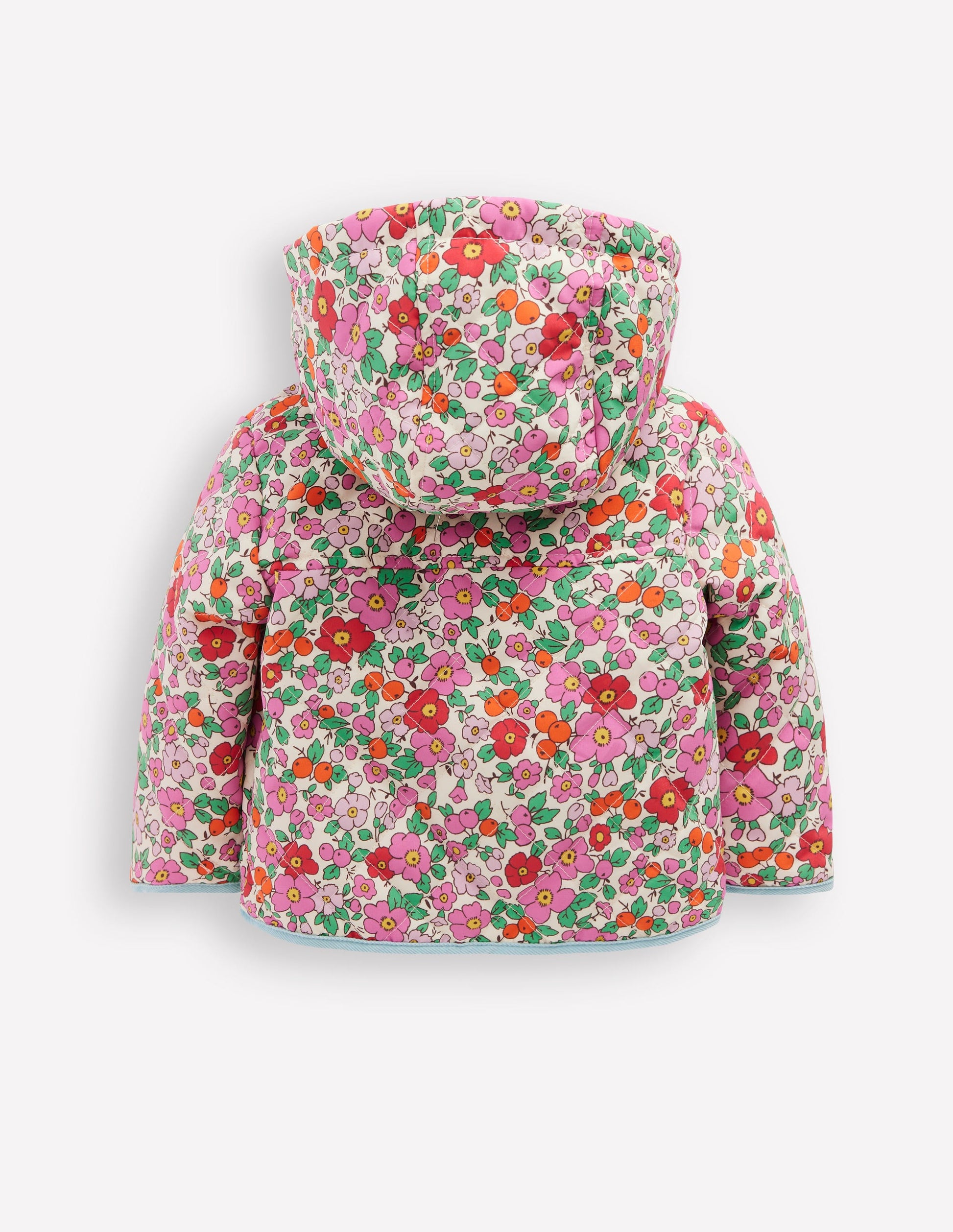 Quilted Hooded Jacket Pink Apple Blossom Floral