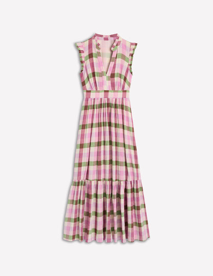 Wren Double Cloth Midi Dress-Pink and Green Multigingham