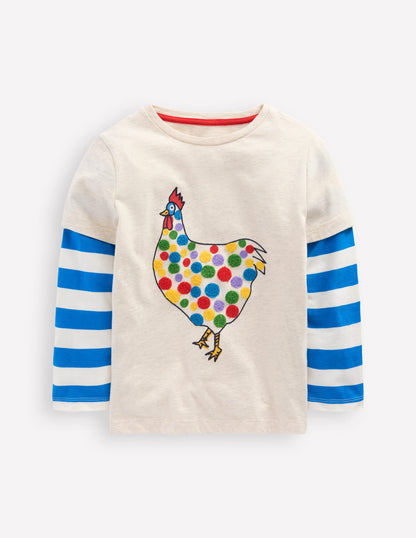 Applique Mock Sleeve T-Shirt Oatmeal Marl Chicken