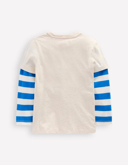 Applique Mock Sleeve T-Shirt-Oatmeal Marl Chicken