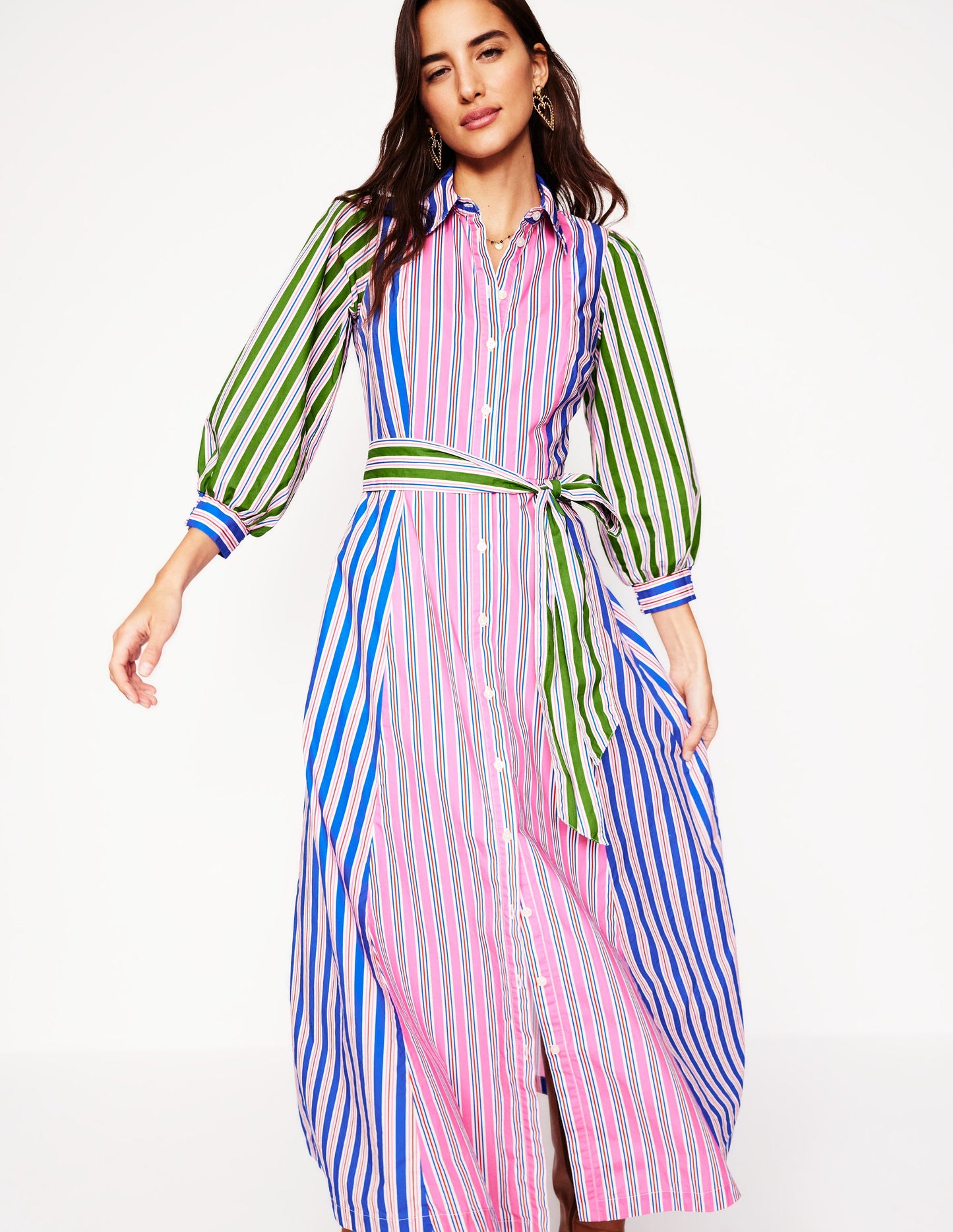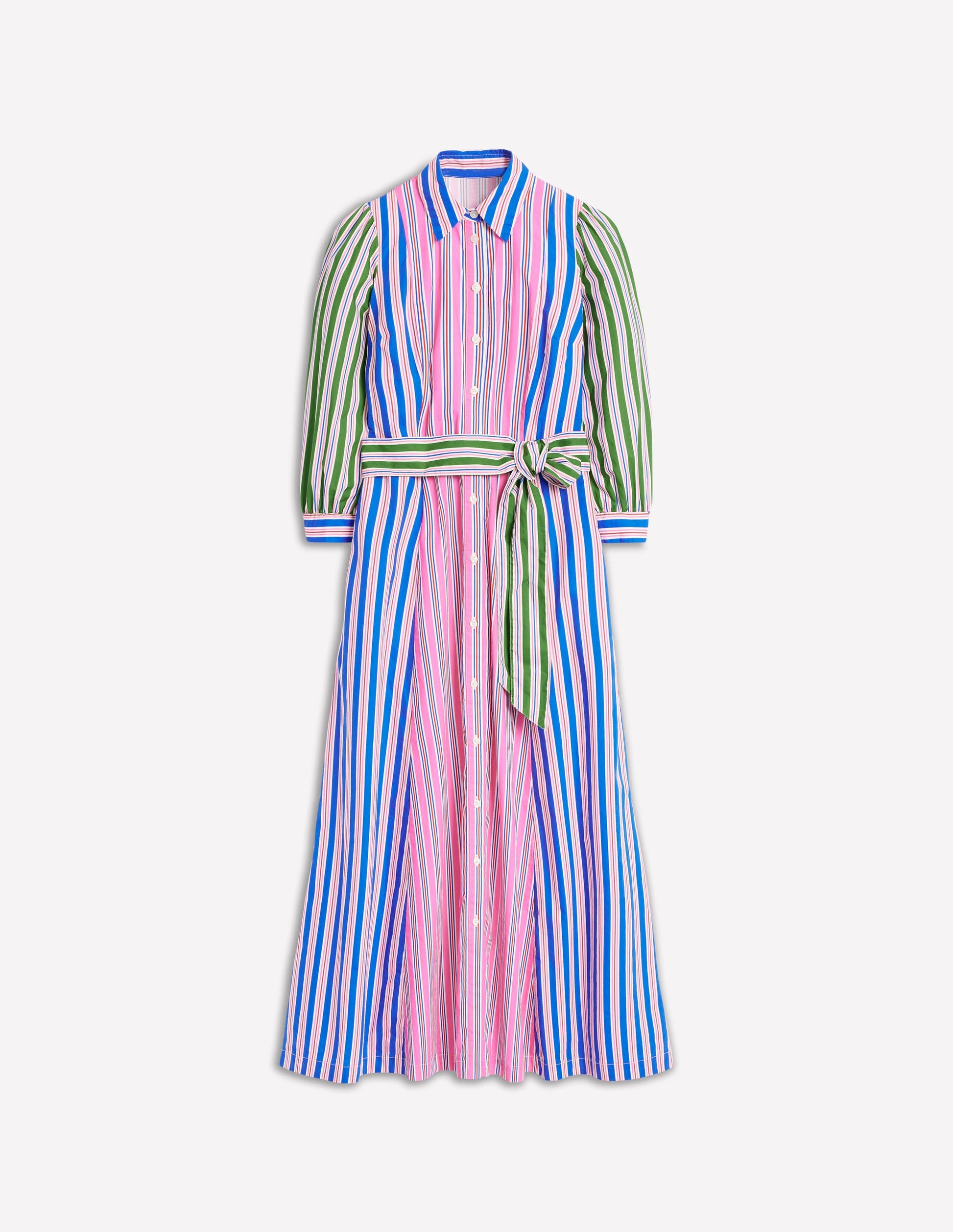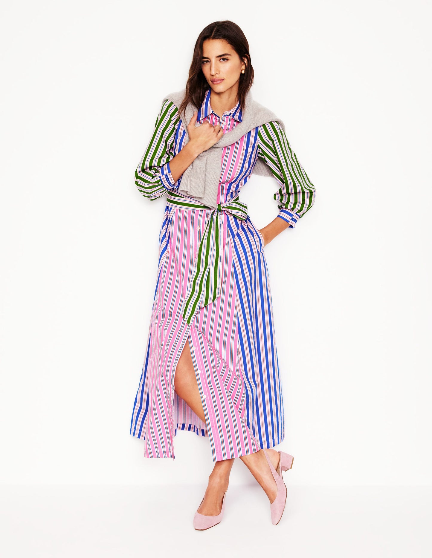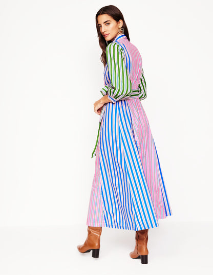 Clara Cotton Shirt Dress-Pink Rose, Red Stripe