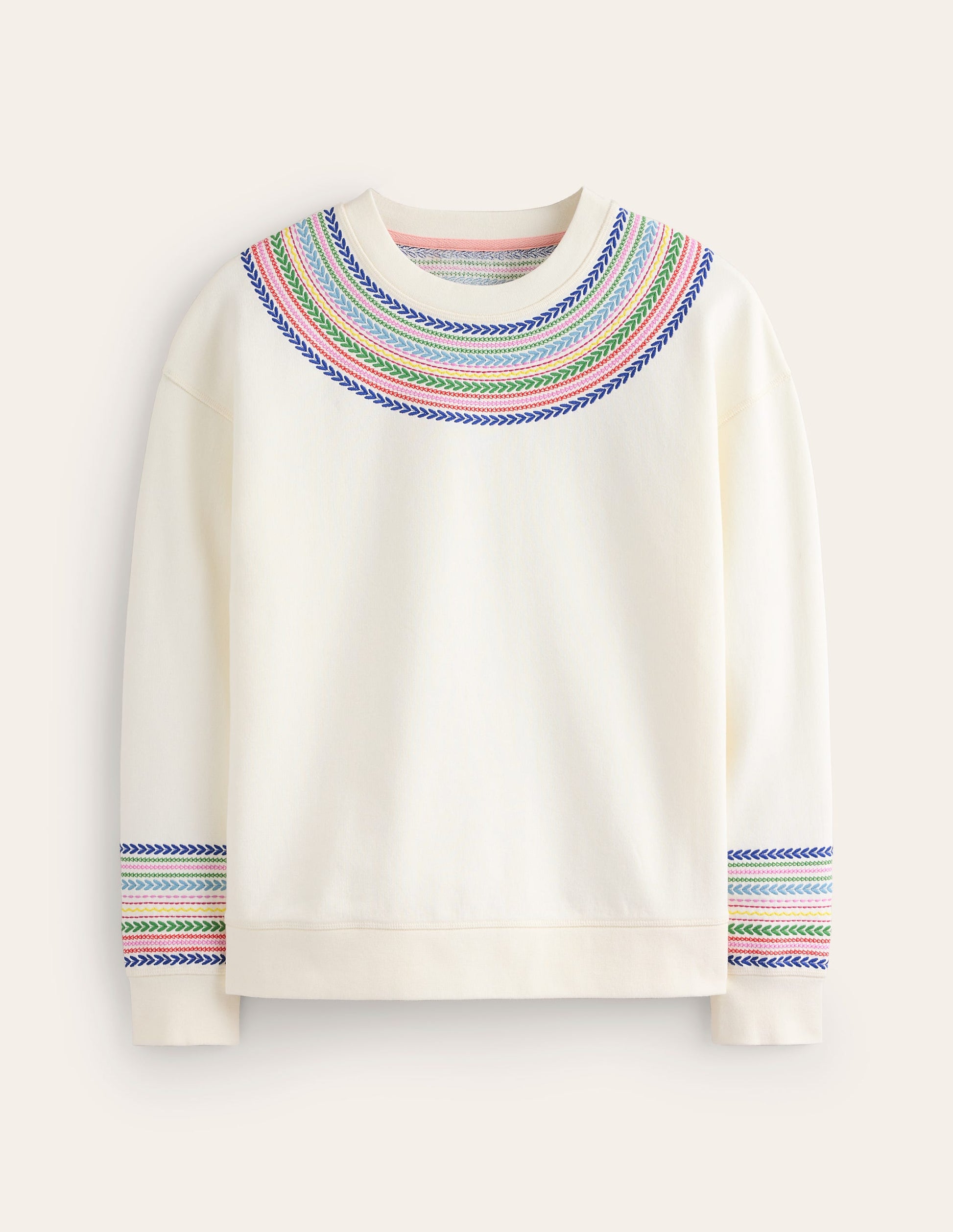 Emi Embroidered Sweatshirt Ivory, Multi Fairisle