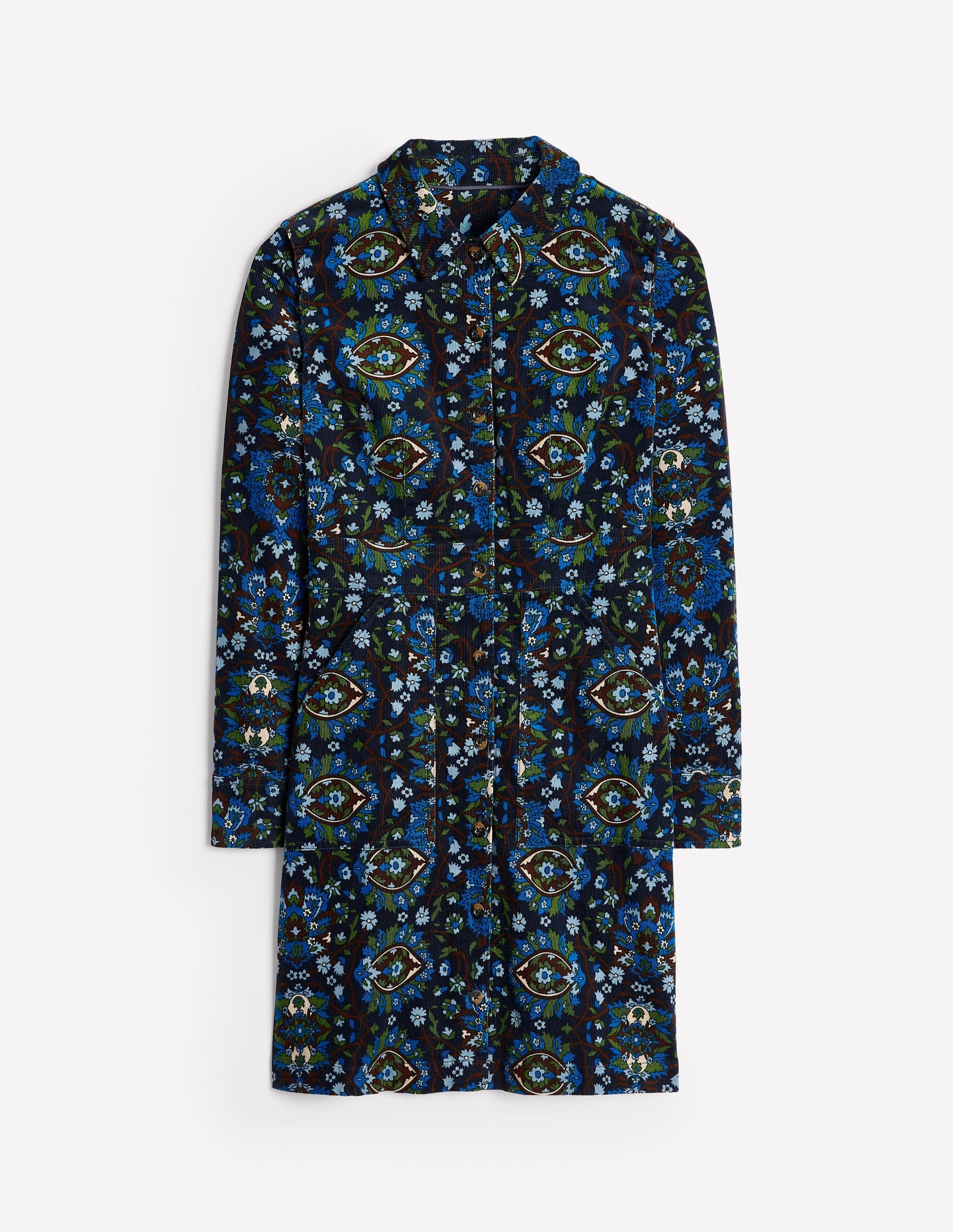 Flora Cord Shirt Dress Kingfisher Blue, Bloom Trellis