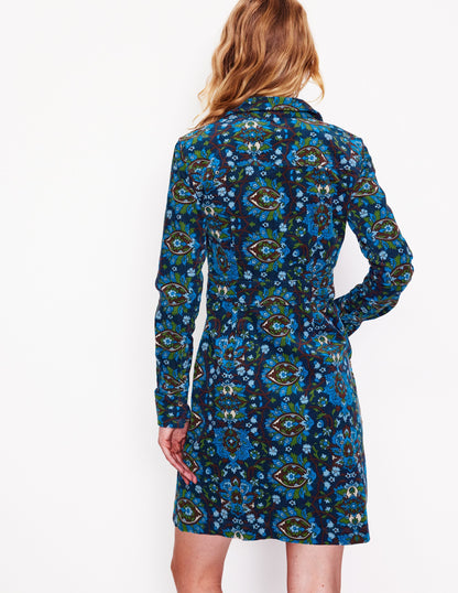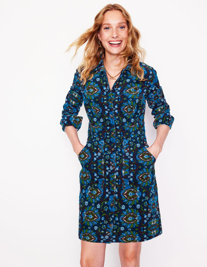 Flora Cord Shirt Dress-Kingfisher Blue, Bloom Trellis