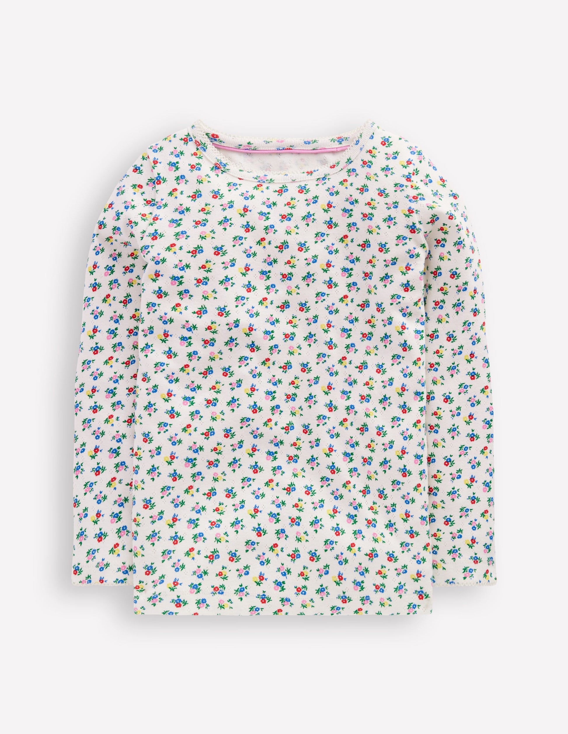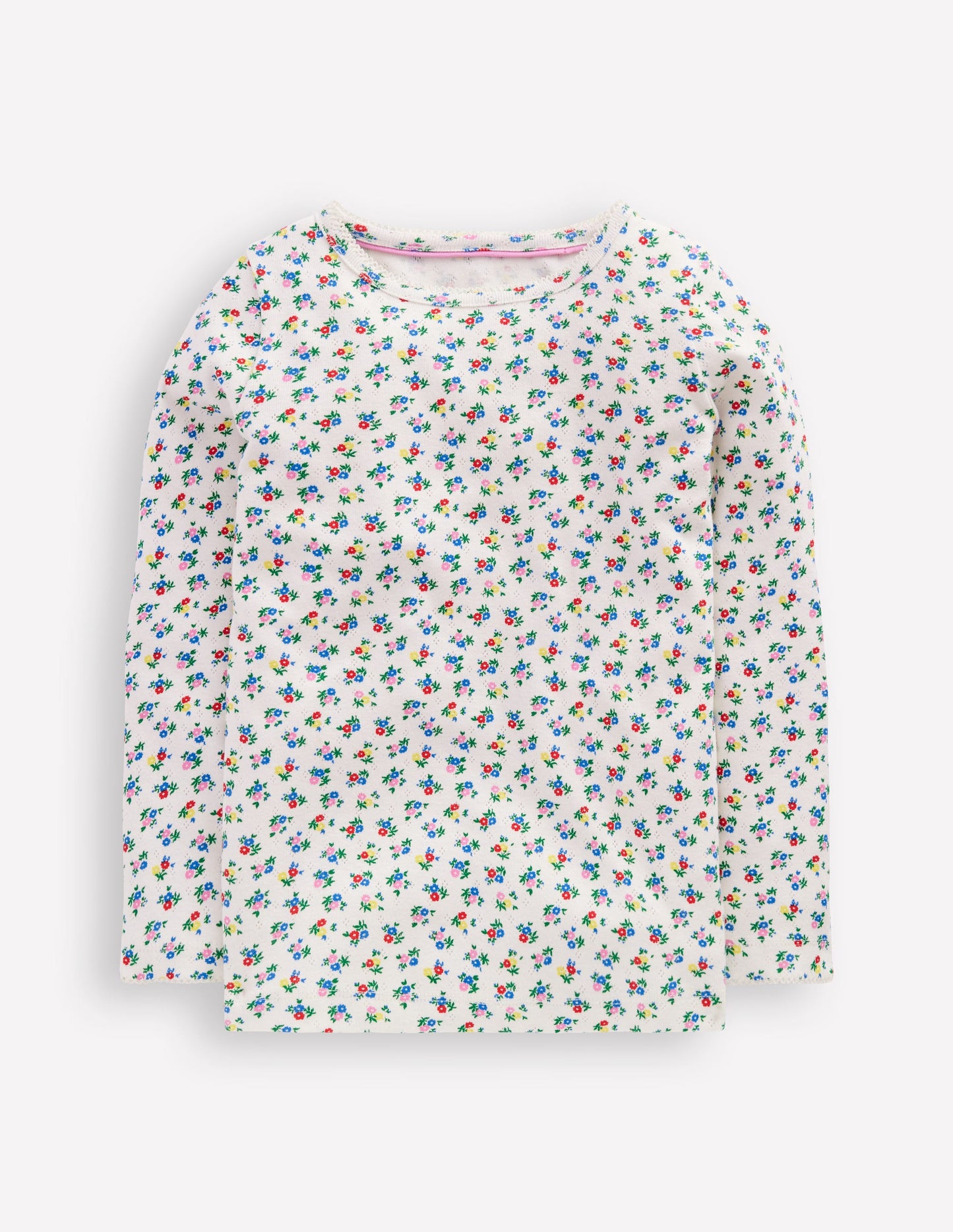 Long Sleeve Pointelle Top Soft Ivory Ditsy