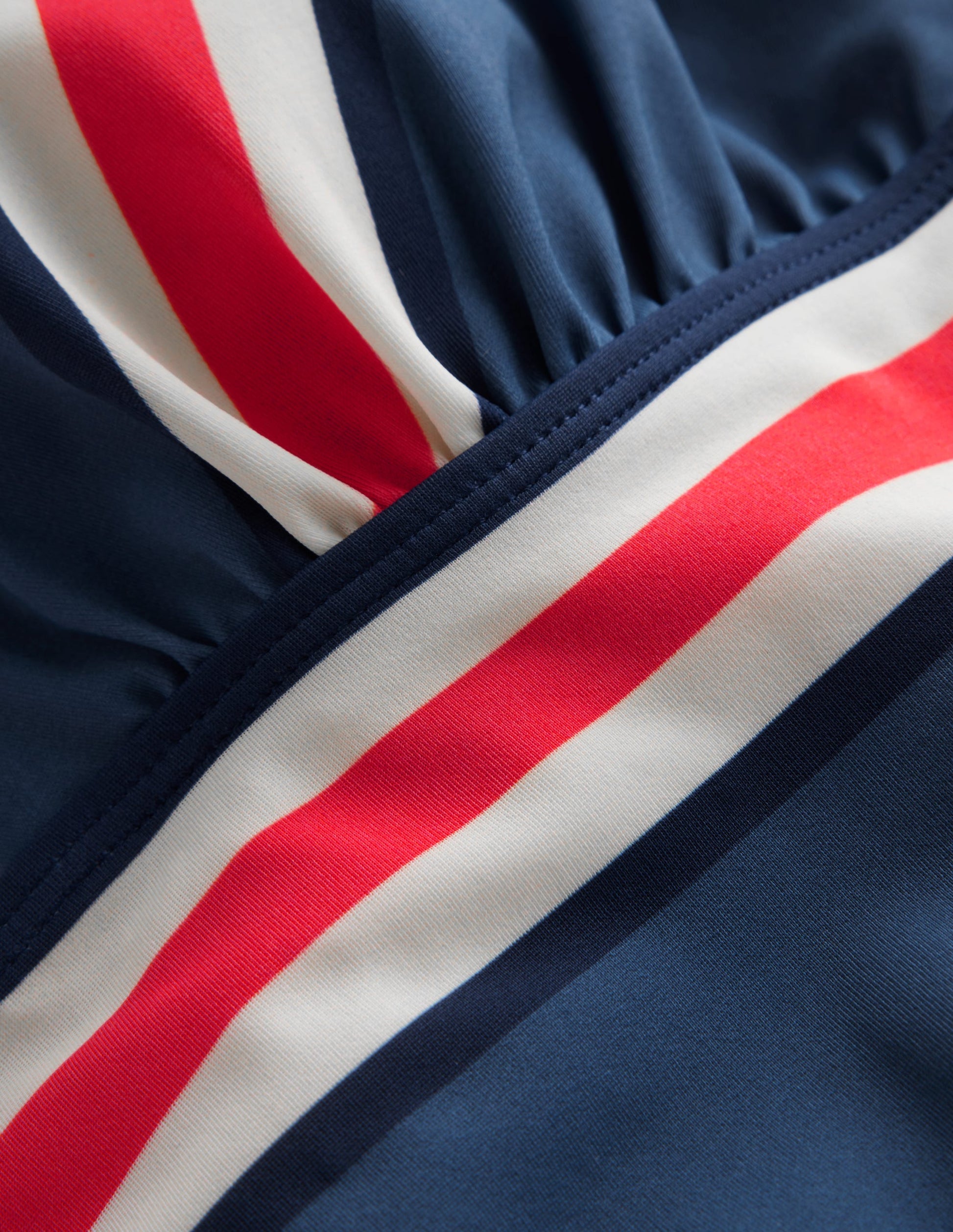 Merano Deep V-neck Swimsuit Blue Jay, Poppy Red Stripe