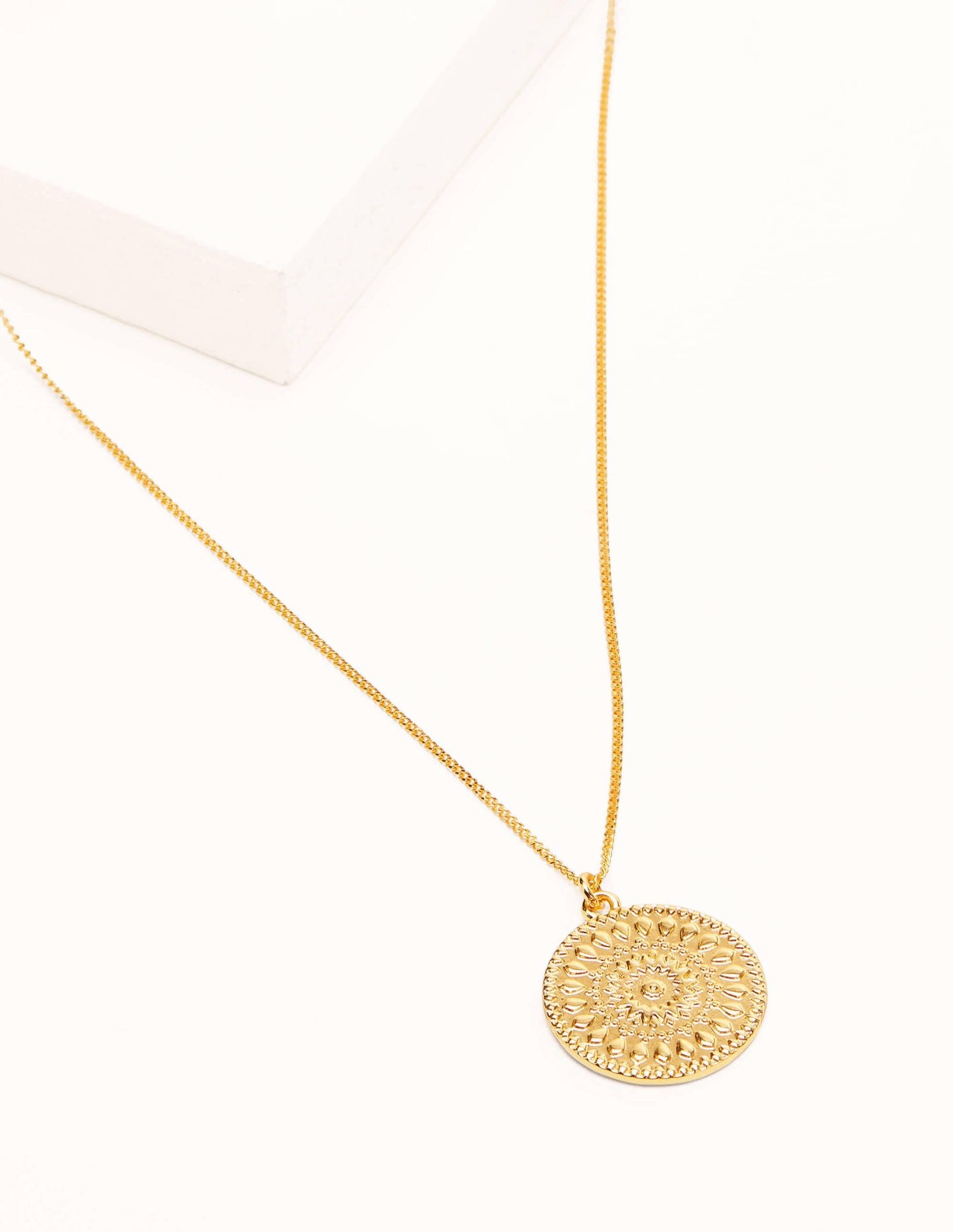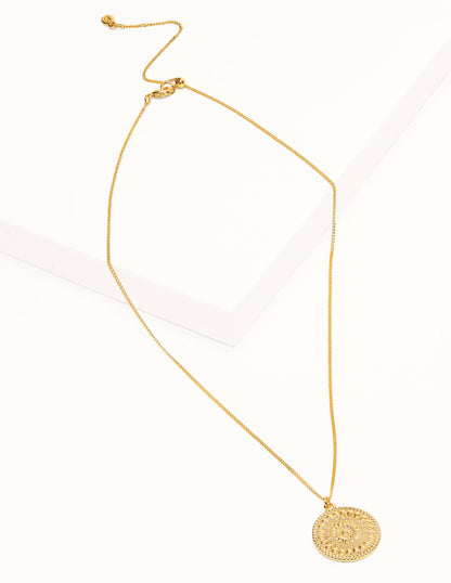 This sophisticated disc necklace fastens with a neat ball slider and lobster clasp, meaning it can be adjusted to your preferred length. To give it texture and a handmade effect, we've added a detailed geometric pattern to the round pendant. Go for a put-together look by teaming yours with the coordinating earrings.