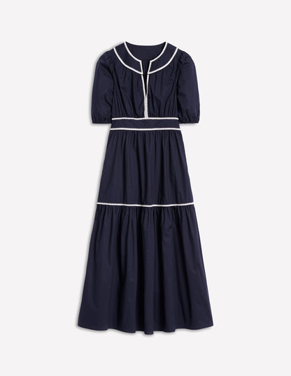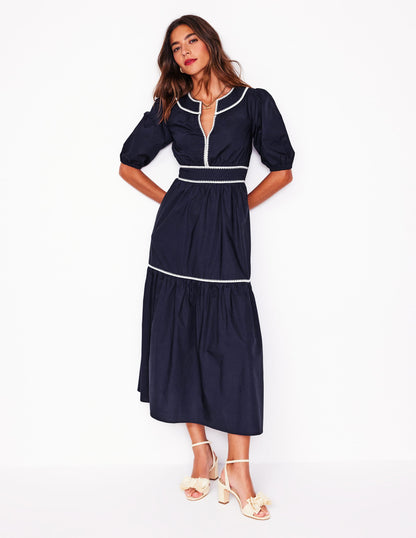 Rhea Embroidered Midi Dress Navy