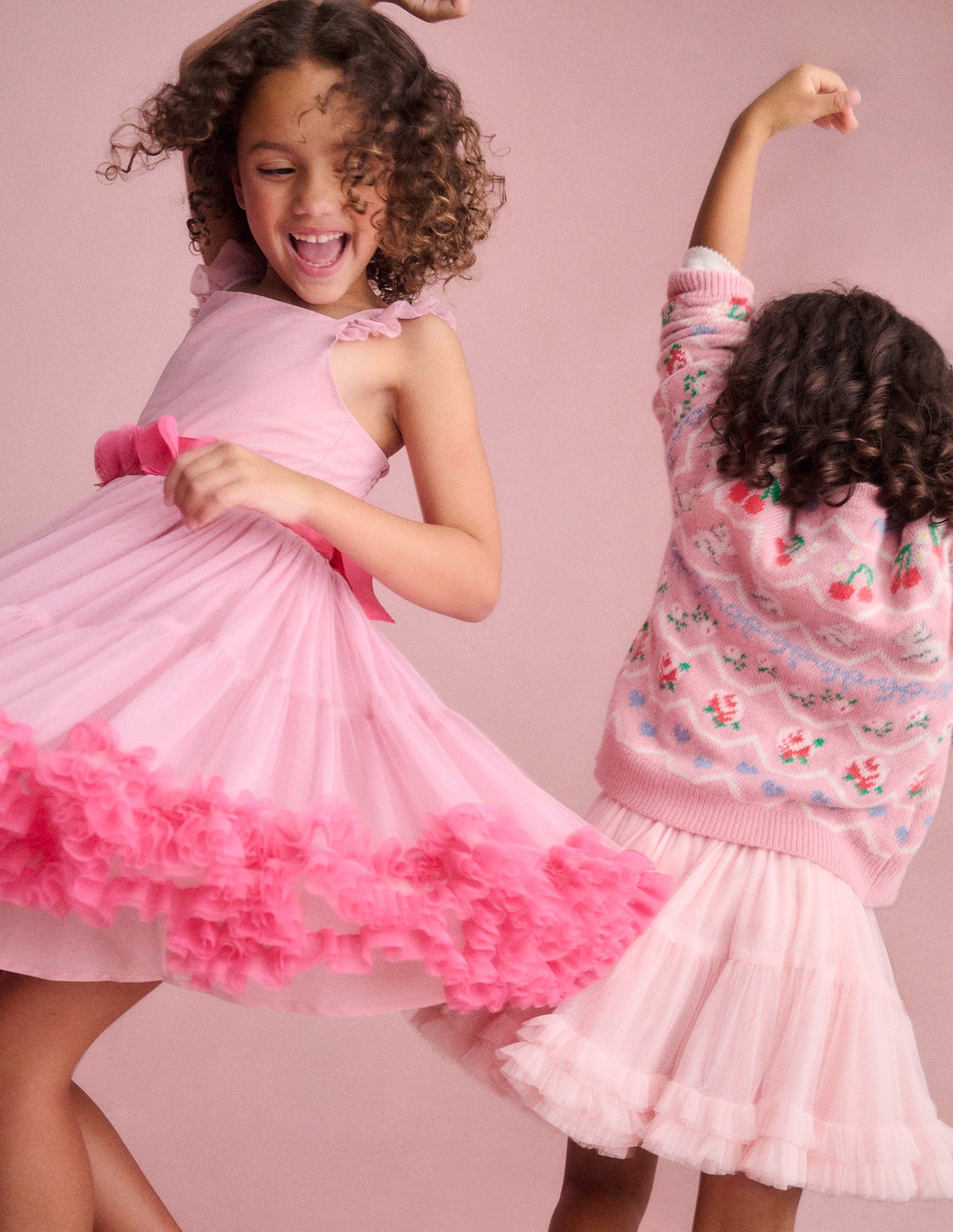 Please note that all our clothes are generously cut and will fit up to the greater size of the dual sizing e.g. 6 years of the 5-6 years so there is no need to buy a larger size.
