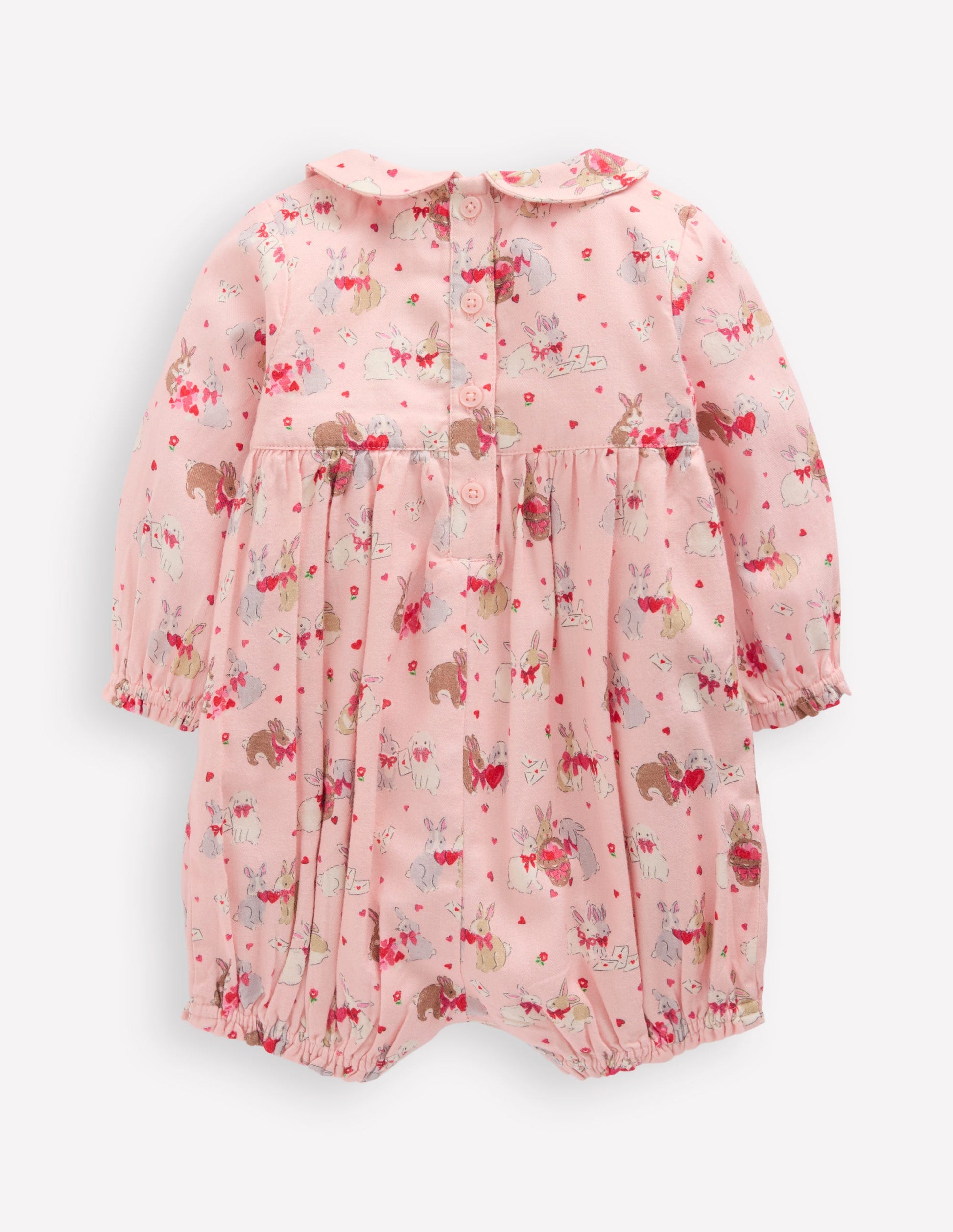 Not only does this romper have a Peter Pan collar and come in a variety of patterns to choose from; each one has smocking stitched by hand (plus a popper opening for easy changing).