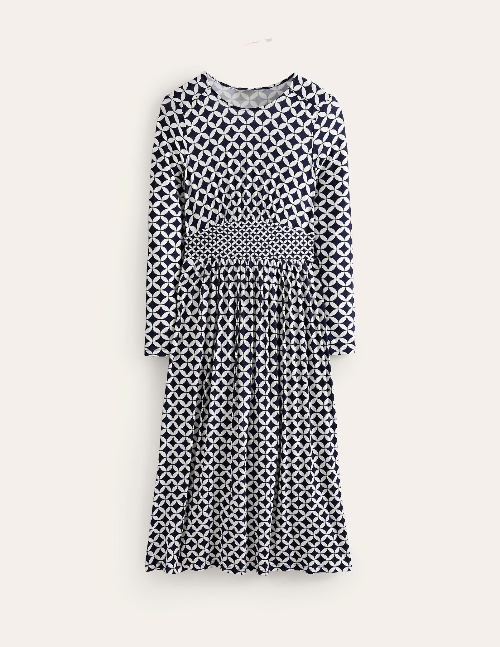 Thea Long Sleeve Midi Dress-French Navy, Diamond Terrace